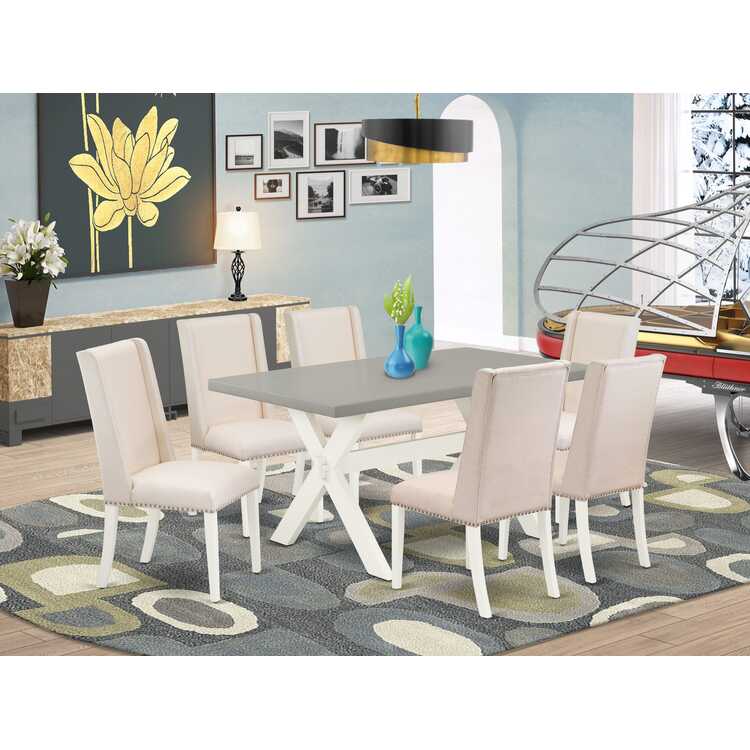 • East West Furniture X096FL201-7 7 Piece Modern Dining Table Set Consist of a Rectangle Wooden Table with X-Legs and 6 Cream Linen Fabric Parson Dining Chairs, 36x60 Inch, Multi-Color image - 1