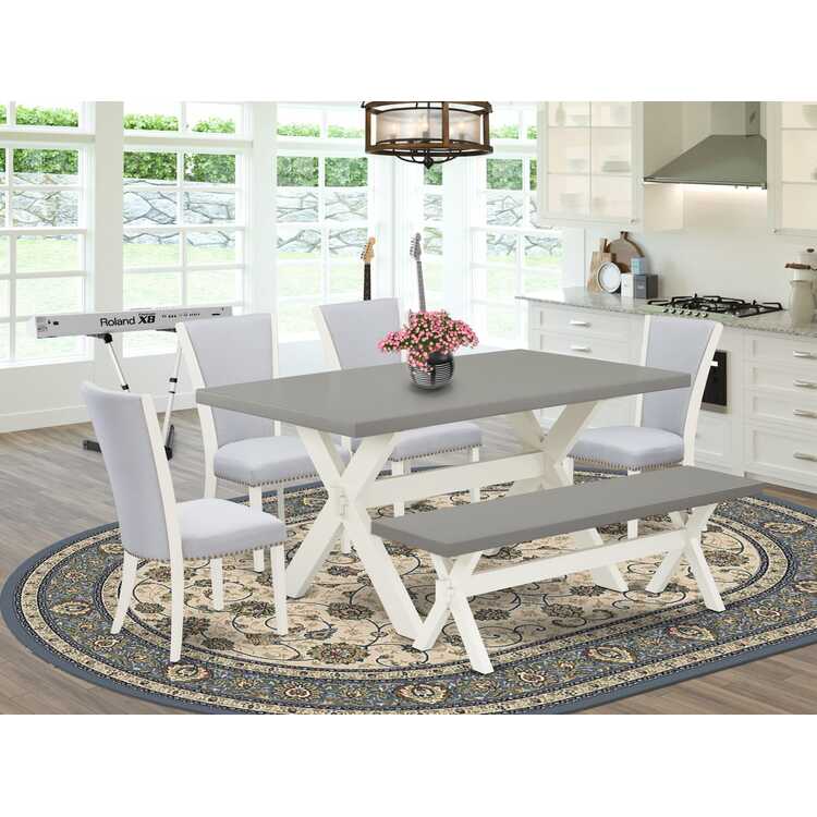 • Grey Linen Dining Chairs & Cement Kitchen Table Set image - 1