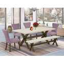East West Furniture X727GA740-6 6 Piece Dining Set Contains a Rectangle Dining Room Table with X-Legs and 4 Dahlia Linen Fabric Parson Chairs with a Bench, 40x72 Inch, Multi-Color