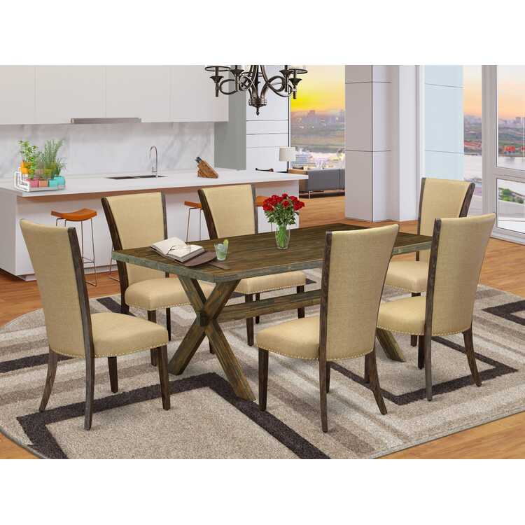 • East West Furniture X777VE703-7 7 Piece Dinette Set Consist of a Rectangle Dining Room Table with X-Legs and 6 Brown Linen Fabric Upholstered Parson Chairs, 40x72 Inch, Multi-Color image - 1