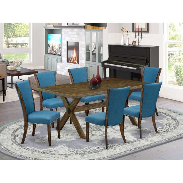 • 7 Piece Dining Set - Blue Linen Fabric Parsons Chairs & Table image - 1