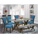 • 6-Piece Blue Linen Fabric Dining Set - 36x60 Inch Table & Bench image - 1