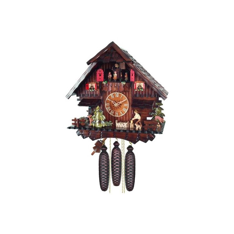 River City Clocks German Cuckoo Clock - Musical Cottage w/ Woodchopper & Waterwheel