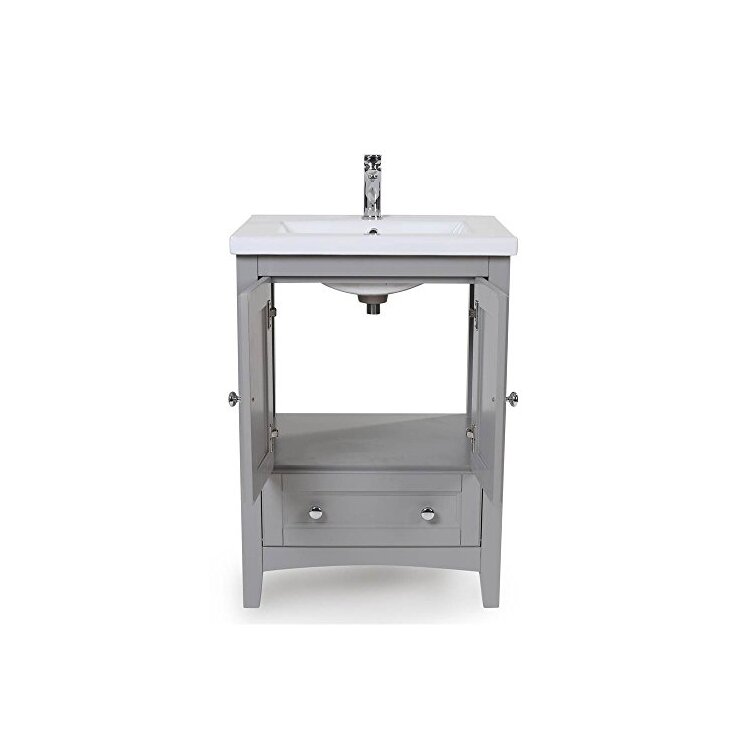 • Medium Grey Single Bathroom Vanity Set in White image - 1