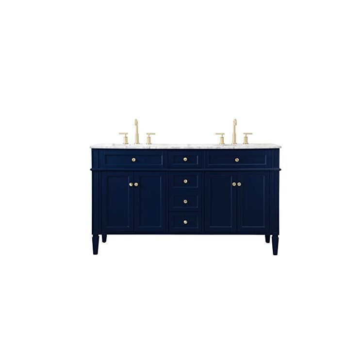 • Blue Double Bathroom Vanity with Carrara White Marble Top & Porcelain Sinks - Elegant Furniture image - 1