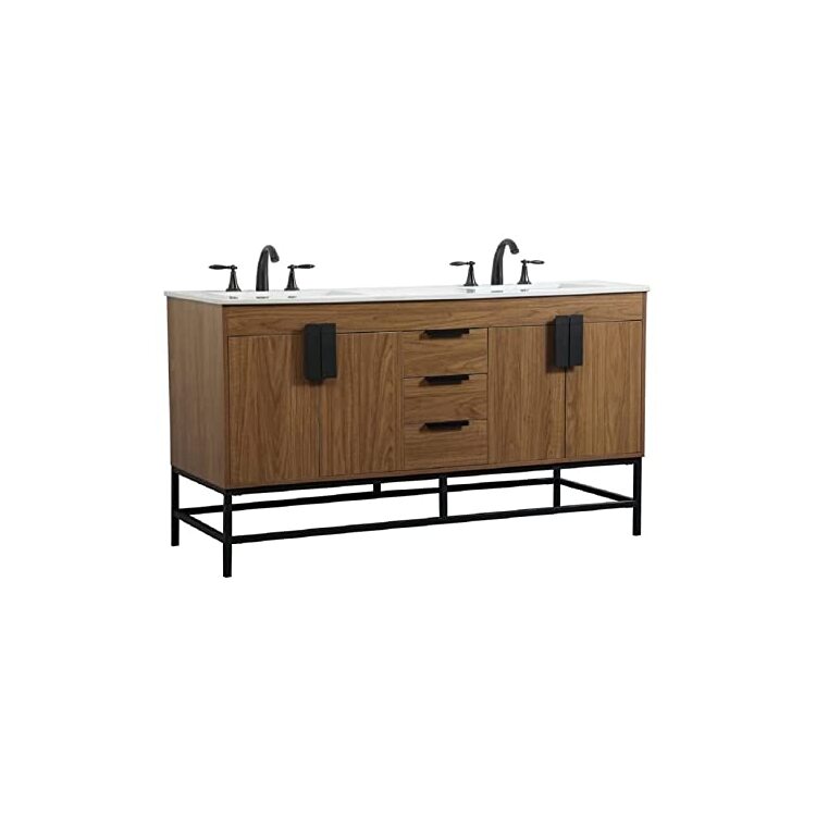 • Elegant Decor 60 inch double bathroom vanity in walnut brown image - 1