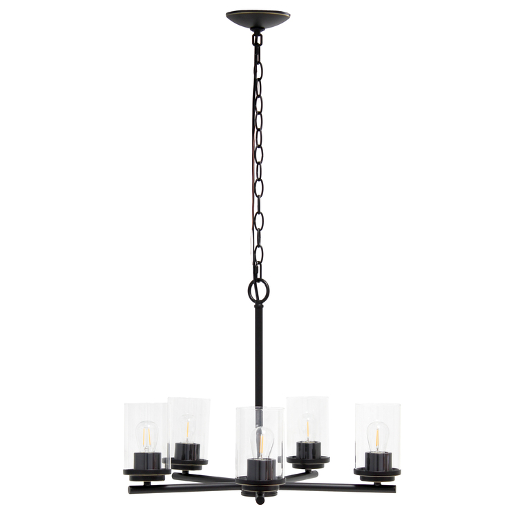 Elegant Designs 20.5" Traditional Vintage Modern Industrial 5-Light Metal and Clear Glass Kitchen Island Foyer Hallway Living Room Den Dining Room Hanging Pendant Chandelier