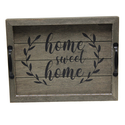 Wooden Farmhouse Serving Tray with Metal Handles Home Sweet Home Script Design