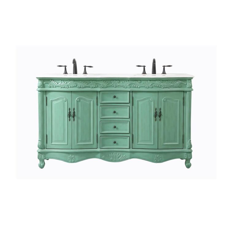 • 60 inch double Bathroom vanity in vintage mint with ivory white engineered marble image - 1