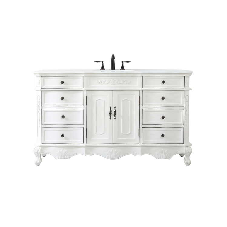 • 60 inch Single Bathroom vanity in antique white with ivory white engineered marble image - 1