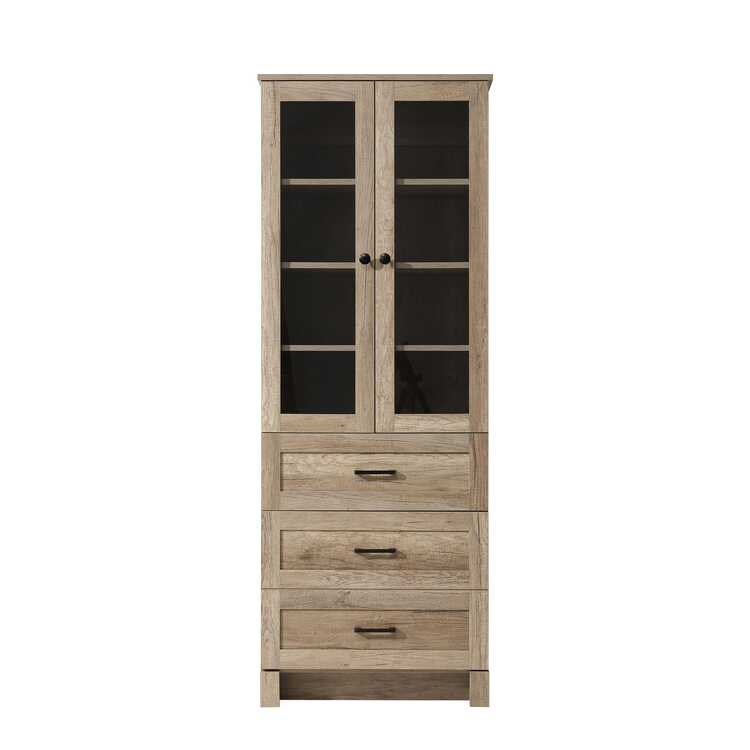 • Elegant Kitchen and Bath 24 Inch Bath Storage Glass Cabinet in Natural Oak image - 1