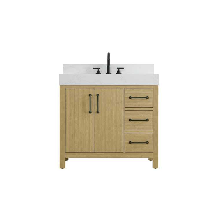• Elegant Kitchen and Bath 36 inch Single Bathroom Vanity In Honey Brown with backsplash image - 1