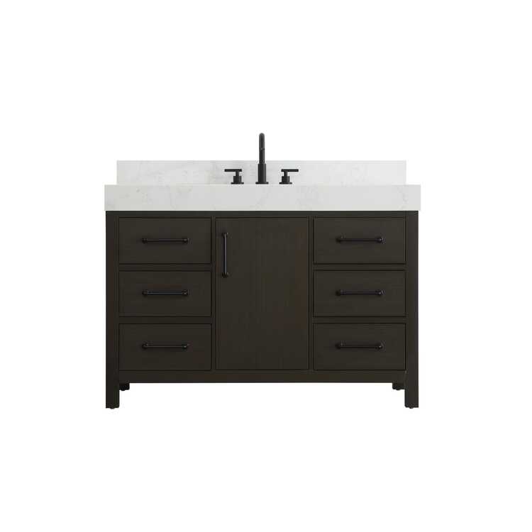 • Elegant Kitchen and Bath 48 inch Single Bathroom Vanity In Mocha Brown with backsplash image - 1