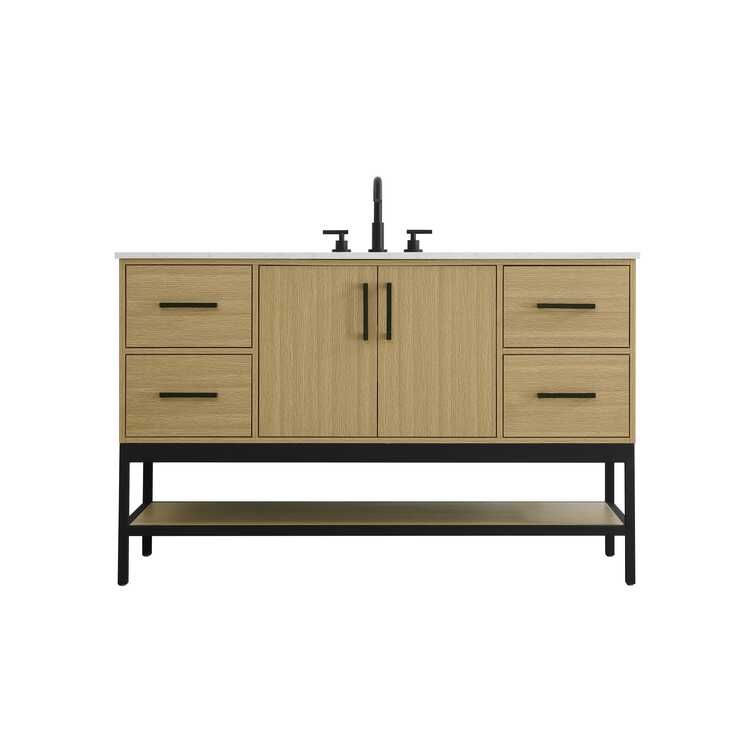 • Elegant Kitchen and Bath 54 inch Single Bathroom Vanity in Honey Brown image - 1