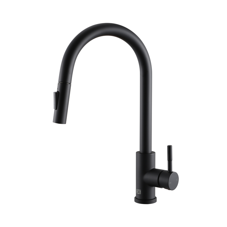 • Elegant Lighting Jack Single Handle Pull Down Sprayer Kitchen Faucet In Matte Black image - 1