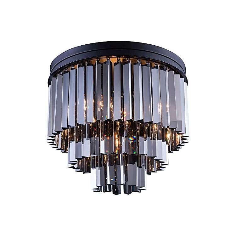 Urban Classic Sydney 9 light Matte Black Flush Mount Silver Shade (Grey) Royal Cut Crystal - Finish:Matte Black - Finish:Matte Black - Finish:Matte Black - Finish:Matte Black - Finish:Matte Black