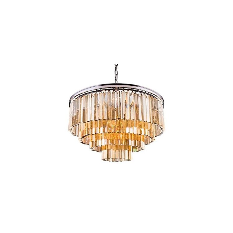 • Polished Nickel Chandelier Golden Teak Crystal Lighting image - 1