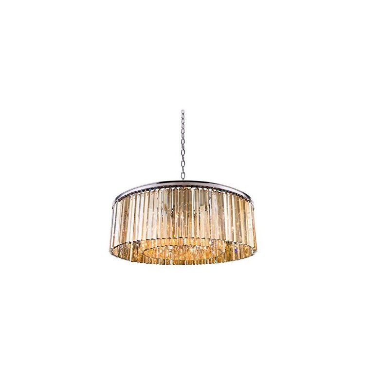 • Polished Nickel Chandelier 10-Light Golden Teak Crystal image - 1