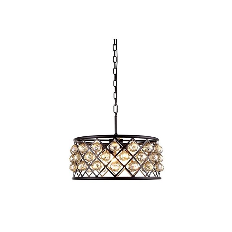 • Matte Black Chandelier with Golden Teak and Royal Cut Crystal image - 1