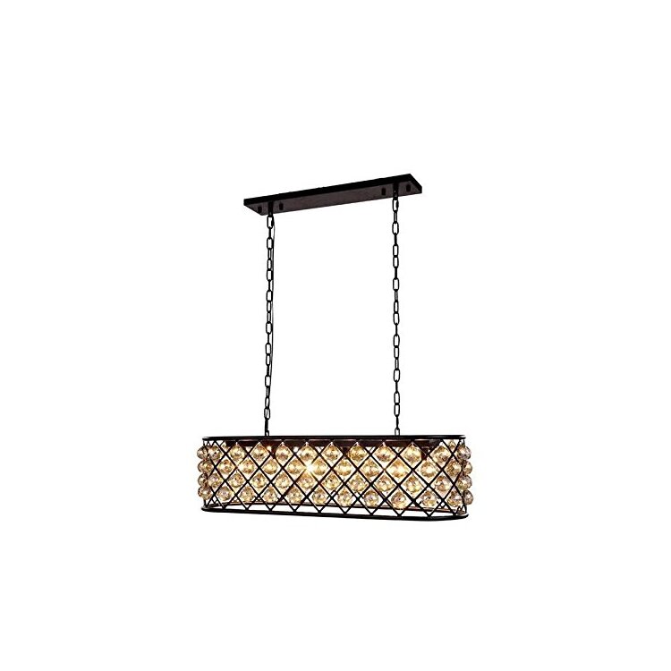 Matte Black Chandelier with Golden Teak and Royal Cut Crystal