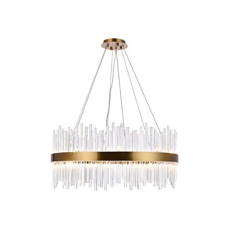 • Gold Chandelier with Clear Glass Rods - 18 Light Fixture - Elegant Furniture image - 1