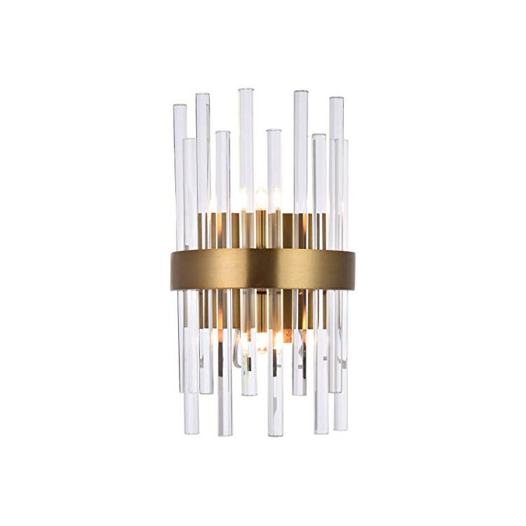 Gold & Clear Crystal Two Light Wall Sconce with Gold Frame - Elegant Furniture
