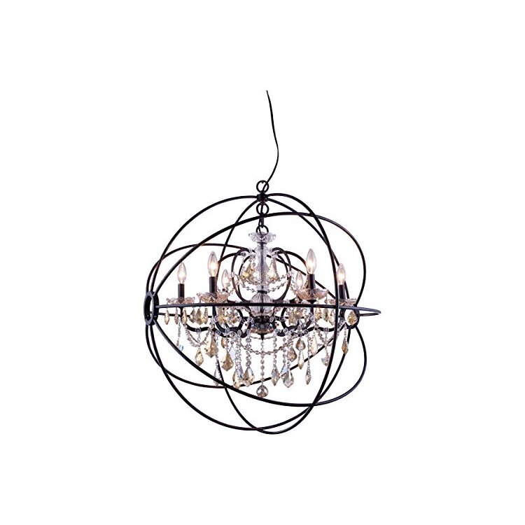 • Dark Bronze Chandelier 6-Light Golden Teak Royal Cut Crystal image - 1