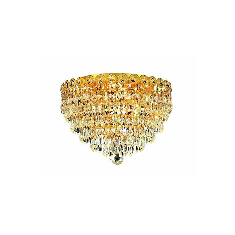 Gold Flush Mount Clear Royal Cut Crystal 4 Light Lighting Fixture