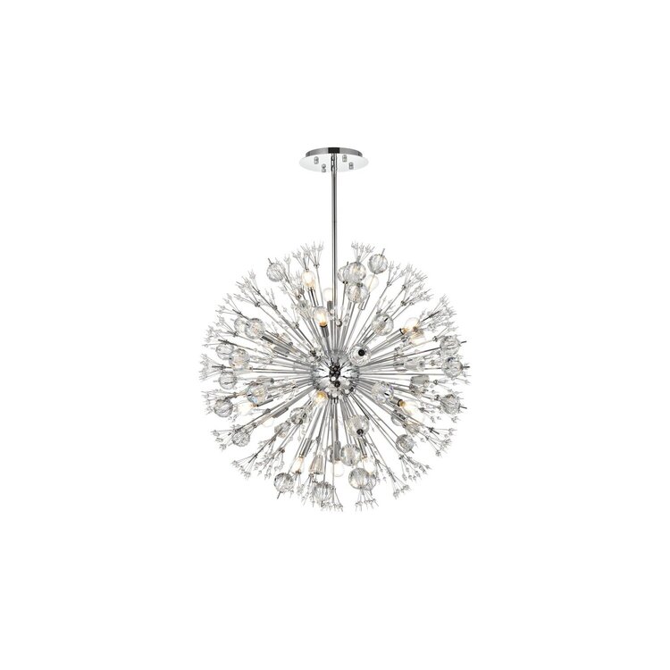 • Elegant Lighting Vera 32 inch crystal starburst round pendant in chrome image - 1
