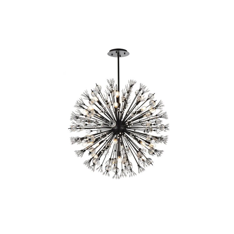 • Elegant Lighting Vera 38 inch crystal starburst round pendant in black image - 1