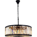• Matte Black Crystal Chandelier, Chelsea Style, 10 Light, Golden Teak Shade - Elegant Furniture image - 1