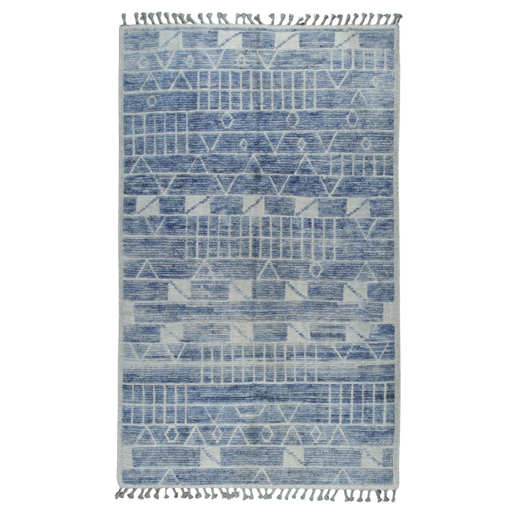 • EORC Blue Hand-Knotted Wool Contemporary Marrakech Handspun Area Rug | Stylish and Elegant Rug for Living Room, Bedroom, Office, or Home Decor image - 1