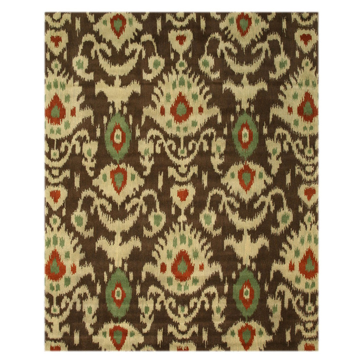 EORC Brown Hand-Tufted Wool Contemporary Ikat Rug, 8'9 x 11'9