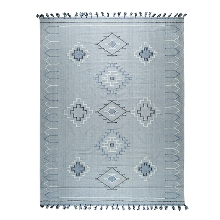 • EORC EI02SL5X8 Hand-Knotted Cotton Flat Weave Rug, 5' x 8', Silver Area Rug image - 1