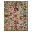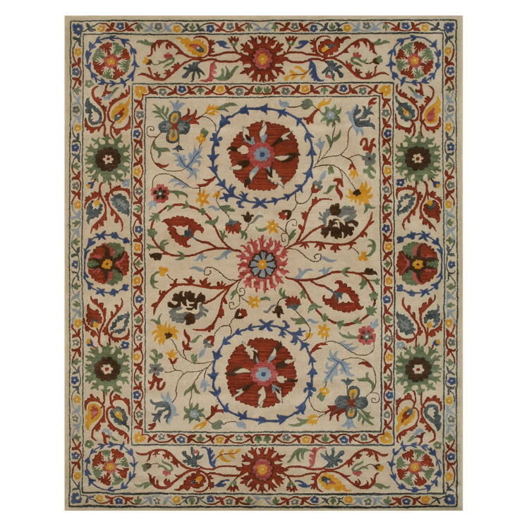 Round Ivory Suzani Rug 7'9 Hand - Tufted Wool Rust, Blue, Green & Gold - Eorc