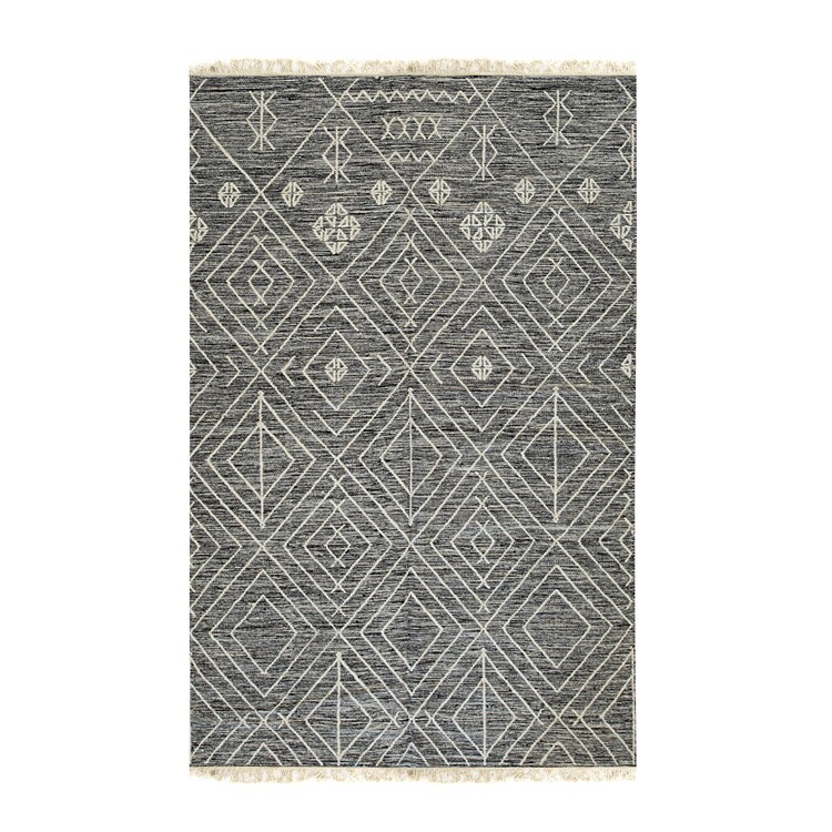 • EORC Charcoal Handwoven Wool Contemporary Punja Kilim Rug, 8' x 10' image - 1