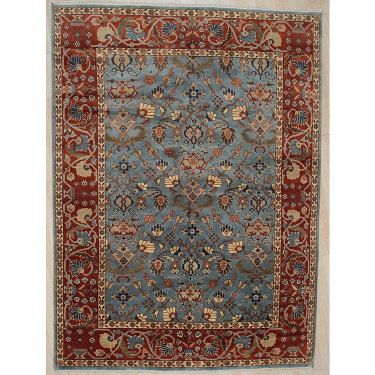 • EORC Blue Hand Knotted Wool Traditional Classic Weave Rug, 9' x 12' image - 1