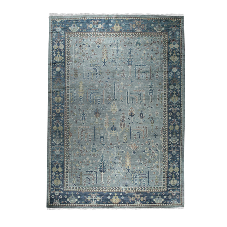 EORC U8BL6X9 Hand-Knotted Wool Oushak Rug, 6' x 9', Blue Area Rug