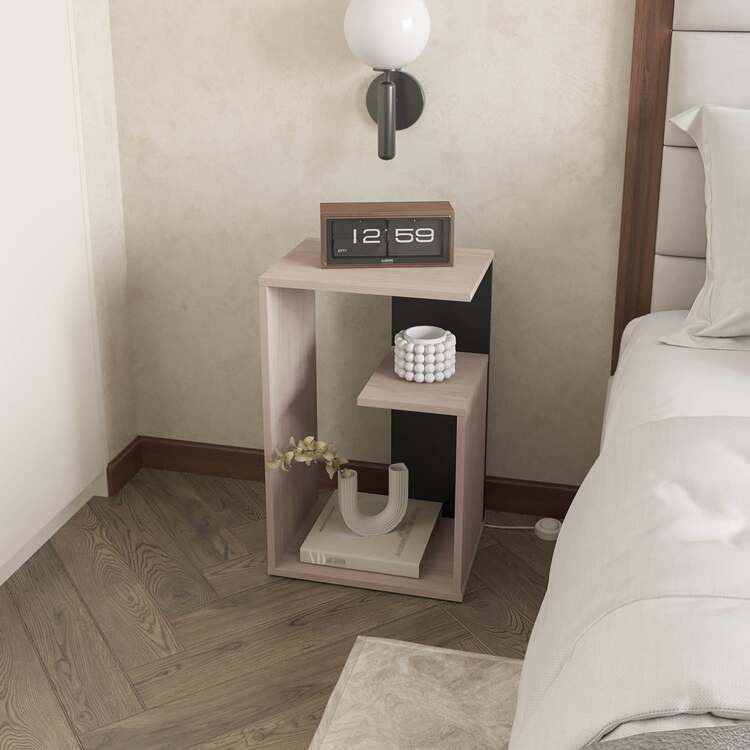 • FM FURNITURE Amado Nightstand with Open Storage, Pearl + Black image - 1