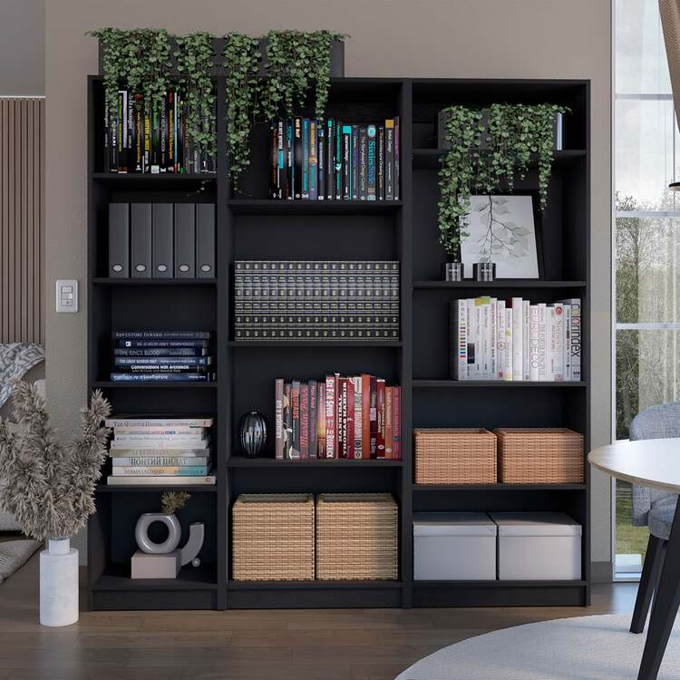 • FM FURNITURE Avra 3 Piece Living Room Set with Sutton Bookcase + Sutton 4 Shelves Bookcase + Sutton Slim Bookcase, Black image - 1