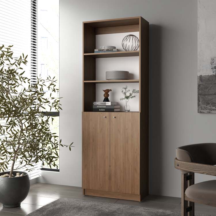 • FM FURNITURE Beyerville Bookcase with Open Storage and 2 Doors, Natural Oak and White image - 1