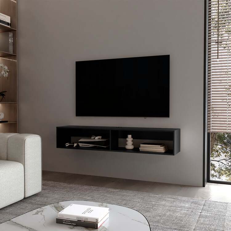 FM FURNITURE Central Floating media rack in melamine with two shelves,black
