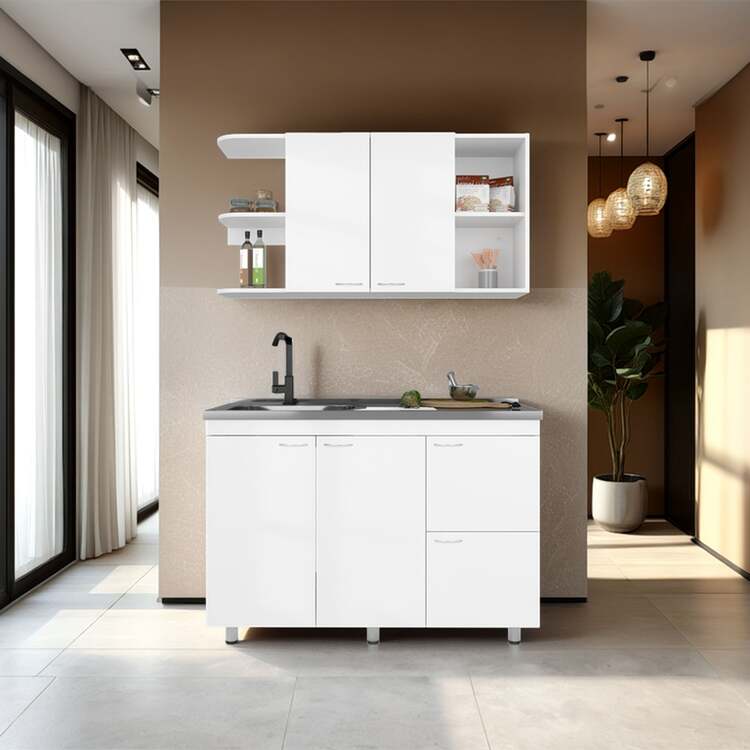 • FM FURNITURE Desert Hills Multifunctional Kitchen Cabinet Set with Ample Storage, White image - 1