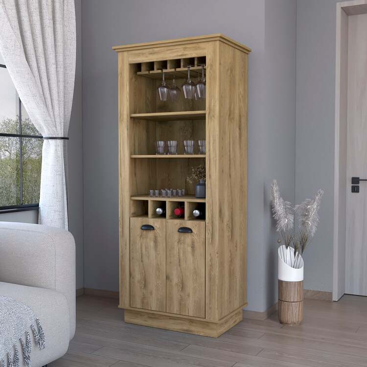 • FM FURNITURE Hampton Bar Cabinet with 4-Built In Wine Rack, Glass Holder and Storage Cabinet image - 1