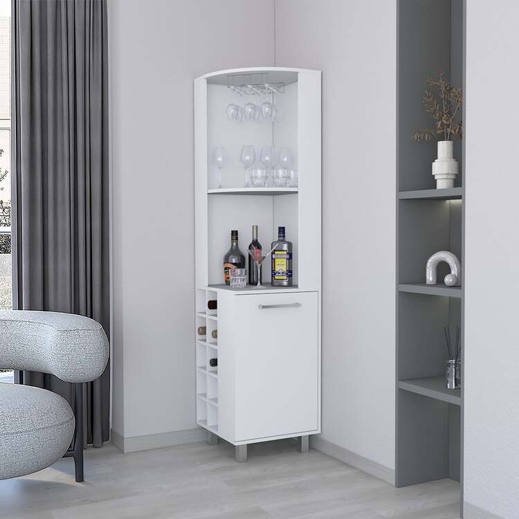 • FM FURNITURE Leah Corner Bar cabinet with ample storage and wine rack, White image - 1