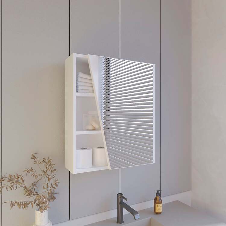• FM FURNITURE Pinedale Medicine Cabinet with Mirrored Door and Open Storage, White image - 1
