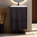 FM FURNITURE Siena Compact Vanity Cabinet, Single Door, Two Open Side Shelves, Space-Saving Design, Melamine,Bathroom Storage Unit, Natural Oak