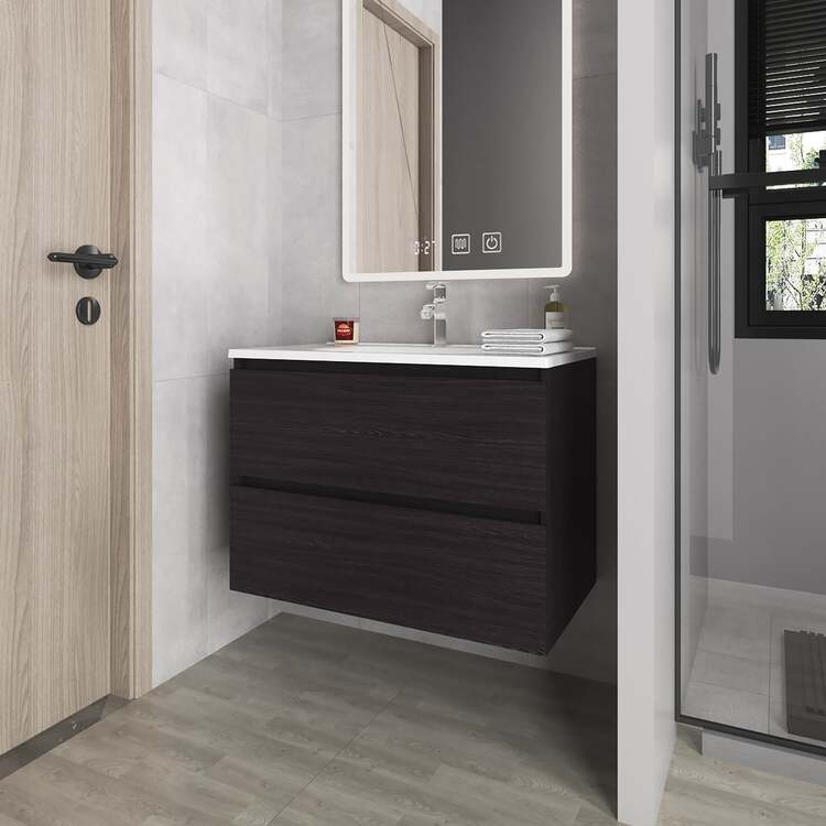 • FM FURNITURE Smoot Floating Vanity with Two Drawers and Sink, Wengue image - 1