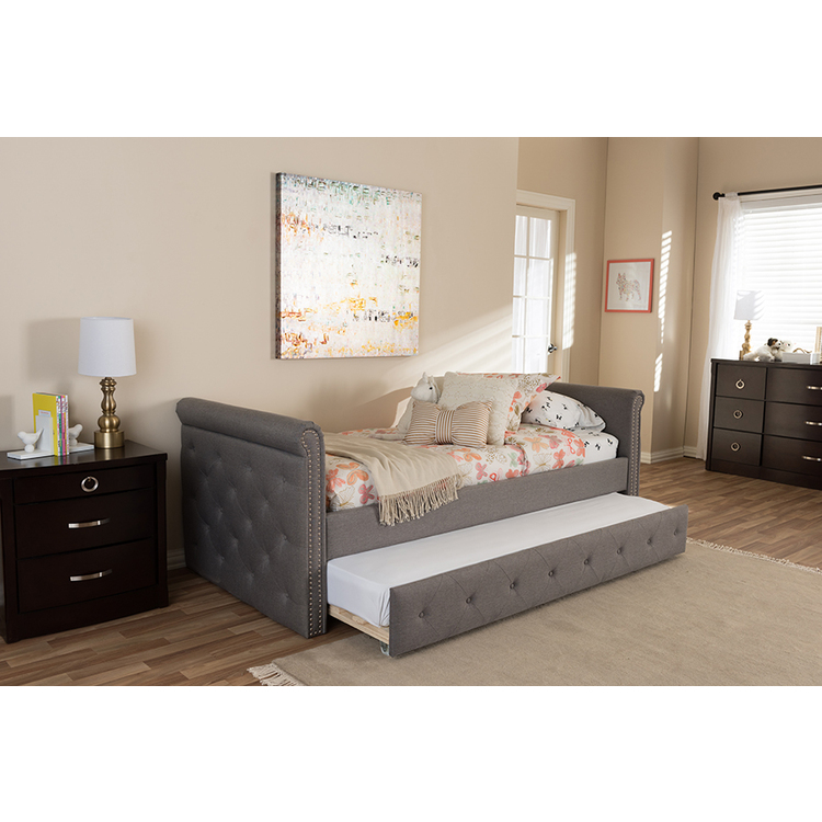 A daybed serves as a sofa and a bed, ideal for lounging and sleeping. A trundle bed is an additional pull-out bed stored beneath the daybed, providing extra sleeping space without taking up more room.
