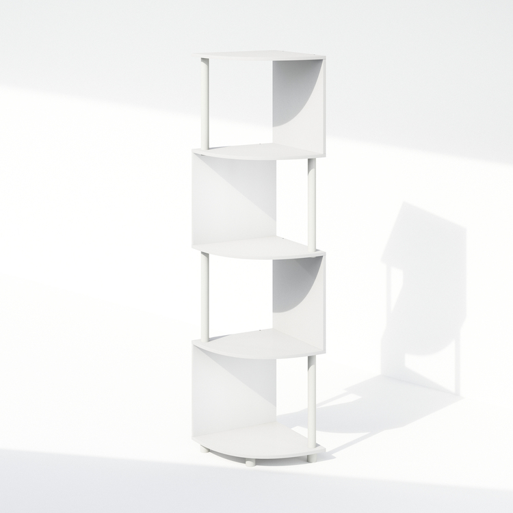 • Furinno Basic 4-Tier Zigzag Corner Multipurpose Standing Shelf, White/White image - 1